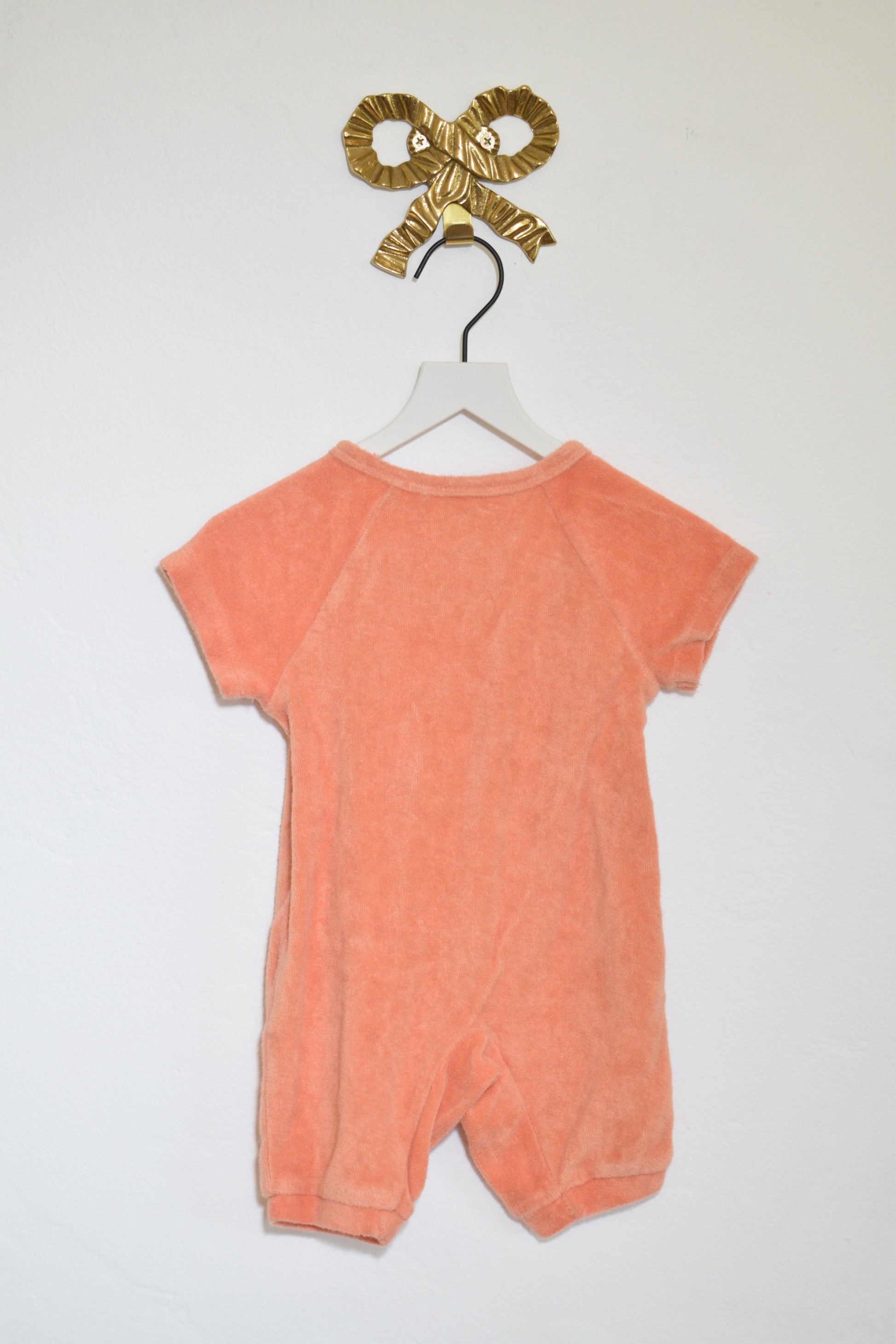 A softly wrapped one-piece for easy days. This short-leg kimono romper has a crossover front for gentle on-and-off and a relaxed, play-friendly fit—cozy for tummy time, sweet enough for outings.